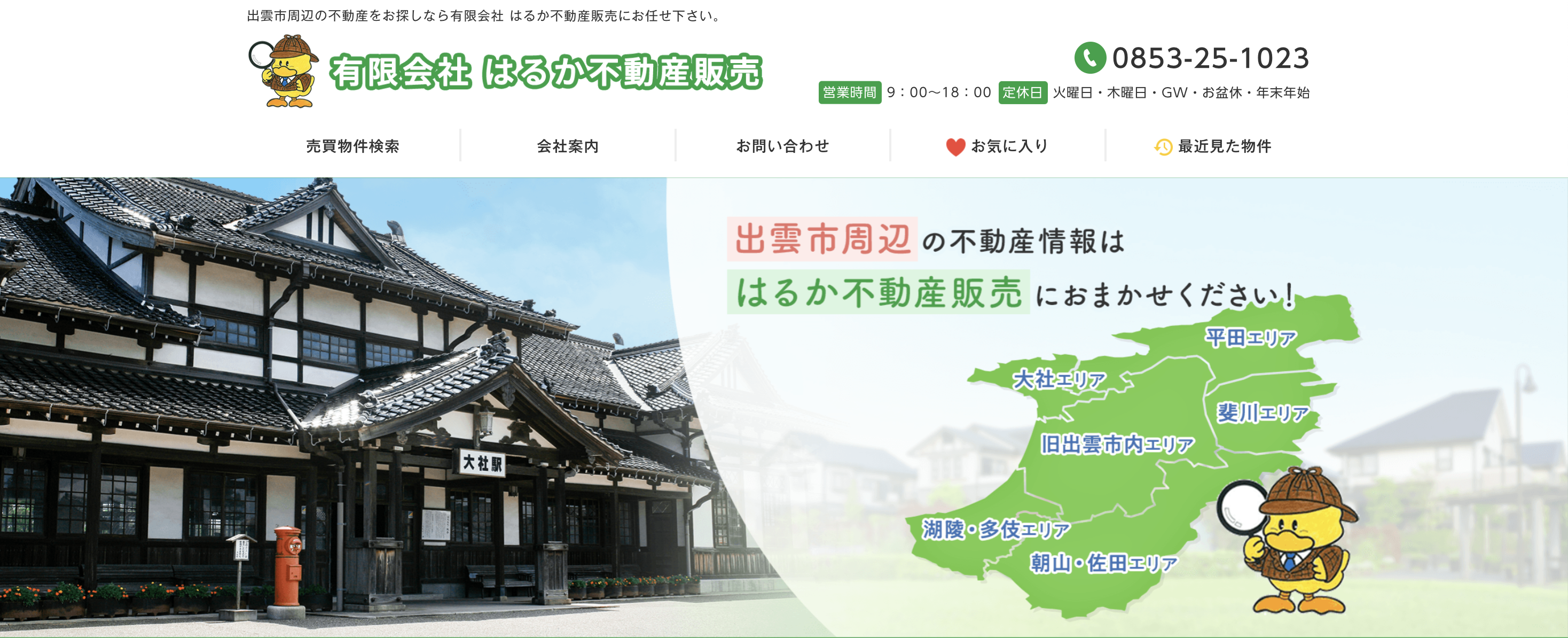 有限会社はるか不動産販売は、島根県出雲市渡橋町820-1に本社を構える地域密着型の不動産会社です。